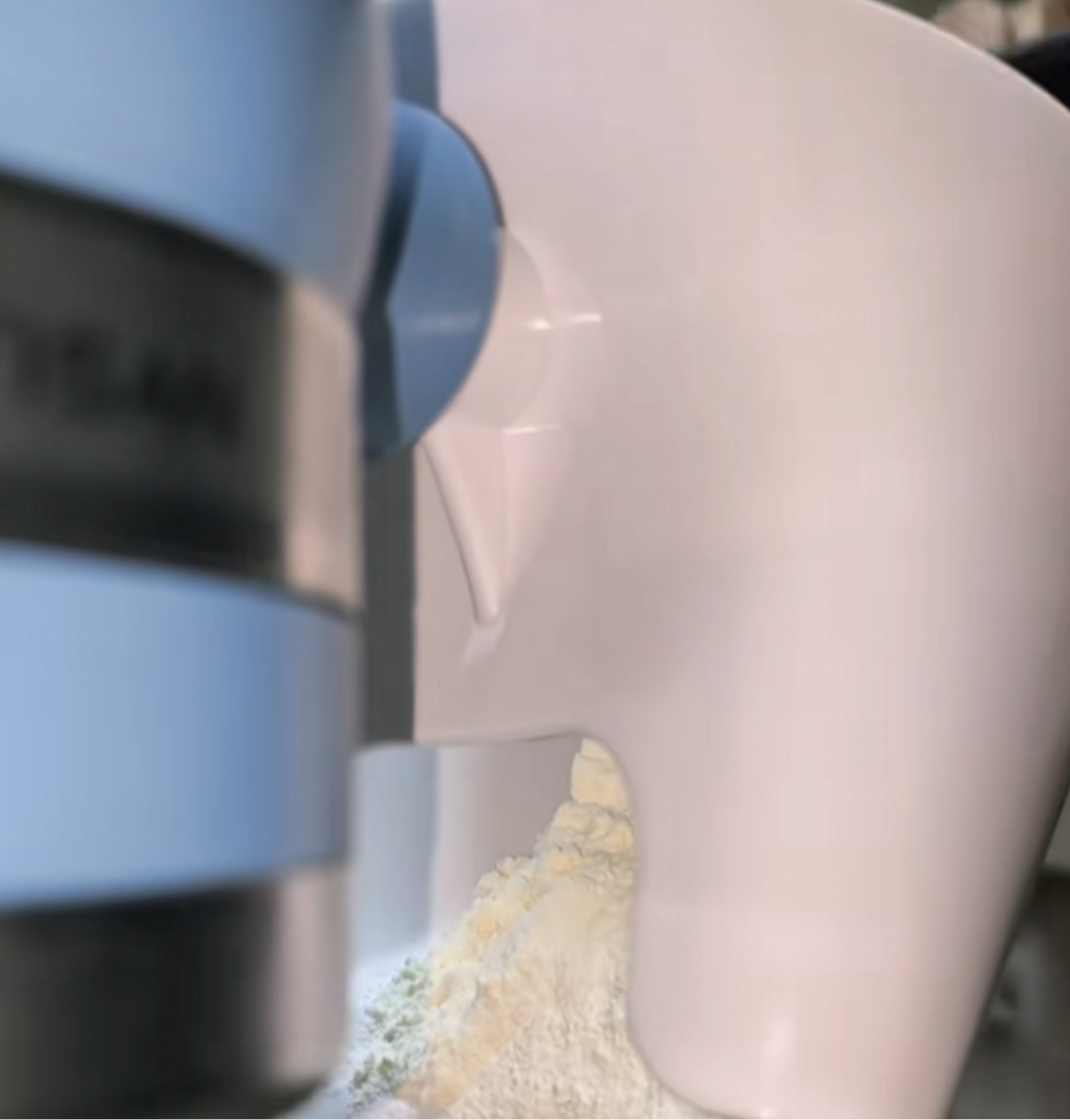 It’s optimized for dry ingredients like flour, sugar, cocoa and powdered mixes, but of course other ingredients like liquids work as well!